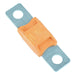150A Orange Mega Fuse suitable for automotive use. The Mega fuse is designed for high current circuit protection, ideal for battery and alternator protection. Includes bolt down mounting holes.