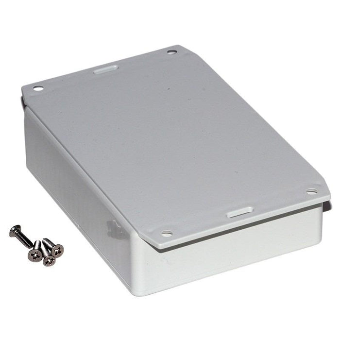 Multipurpose flame retardant ABS enclosure with flanged base suitable for a wide range of applications including mounting printed circuit boards. The enclosures form a tight and secure fit to protect electronics from dust and water, protection rating IP54. The enclosures are made from ABS and include screws to secure the lid.