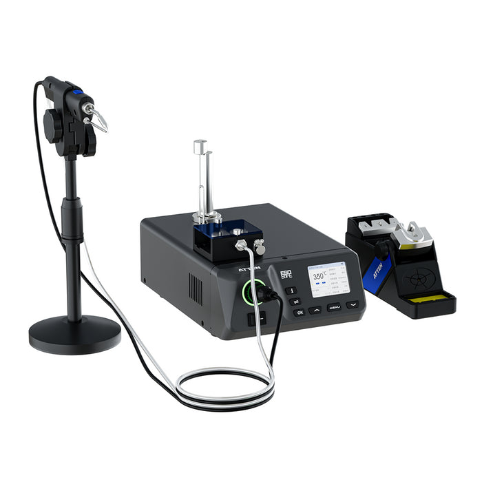 The ZT-660-150G is a professional auto-feed soldering station with tin breaker, featuring 180W power and automatic solder dispensing system allowing efficient single handed operation. The station features an anti-static design and adjustable temperature range, supporting up to 10 sets of custom parameters. The solder feeding speed and length can be adjusted making the station versatile for most applications.