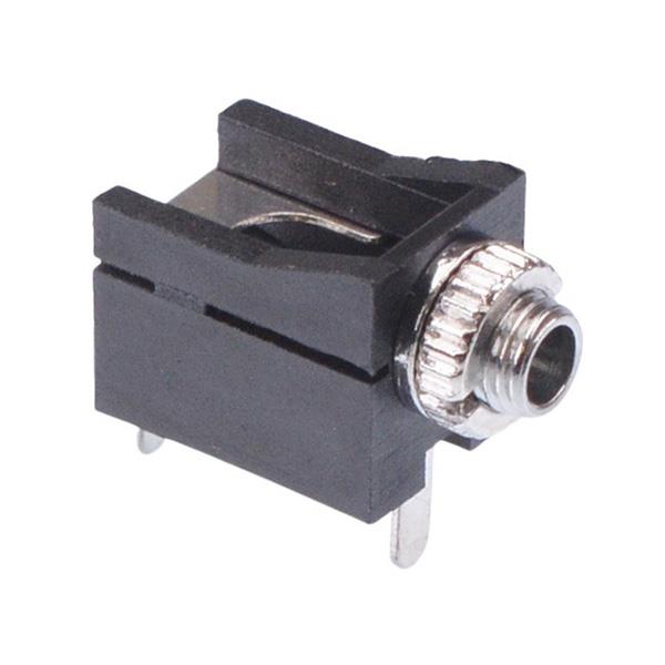 2.5mm mono socket featuring a compact package and solder terminals, suitable for panel mount and PCB audio applications.
