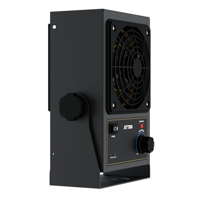 The ST-1015W is a desktop AC ion fan that blows warm ionized air over the surface of electro-static sensitive products. The fan features variable speed control, suitable for both small and large areas, eliminating static electricity from 1000V to 100V within 2 seconds. The fan features a compact lightweight design with angle adjustability, suitable for a wide range of soldering, PCB and electronic applications.