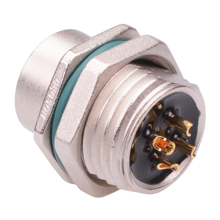 4 female contacts (A coded) M12*1.0 thread Solder terminals Sealed to IP68 Unshielded Current rating: 4A Voltage rating: 250V Mounting thread: M16*1.5 Panel thickness: 4.5mm max Contact carrier material: PA Contact material: gold plated copper alloy Body length: 20mm