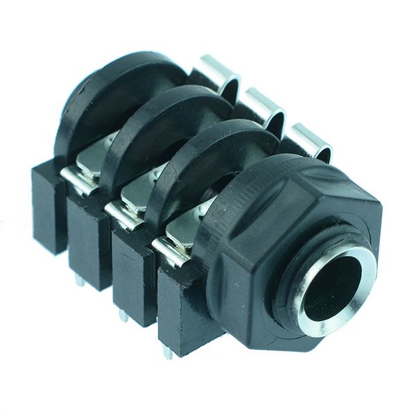 PCB mount stereo audio socket suitable for use with 6.35mm plugs, suitable for 11mm mounting hole diameter.