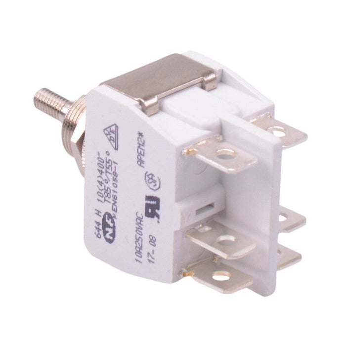 The 644HX2330 is a high amperage On-On-On toggle switch featuring a threaded lever and DP3T contacts. The switch features screw terminals and are popular for a wide range of applications due to there reliability and rugged design.