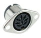 Chassis mount DIN socket with 8 ways suitable mating with male plugs. The sockets are designed for panel mounting and are commonly used for audio applications.