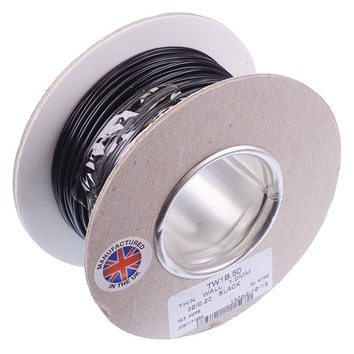 Black 1mm Thin Wall Cable 32/0.2mm 50M Reel 16.5A