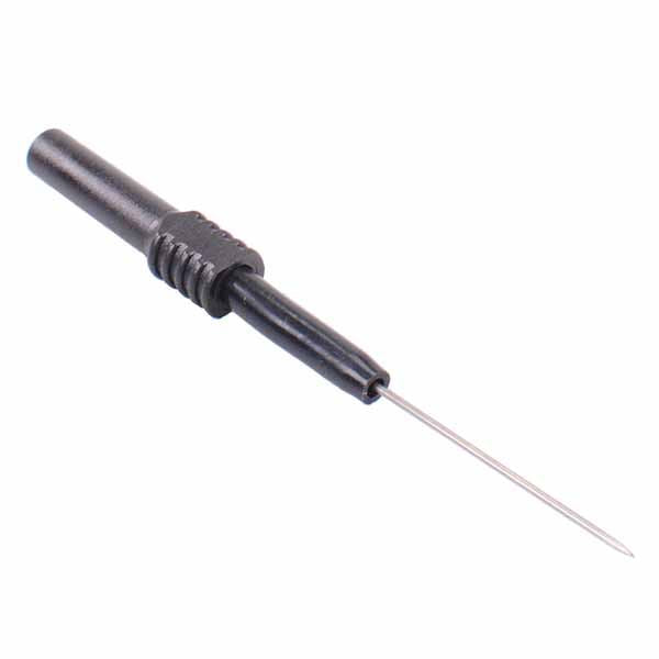 Black flexible safety test clips featuring a 4mm socket extension and sharp stainless steel tip. The probe features a stainless steel spring and silicone body, making them suitable for a wide range of test applications.