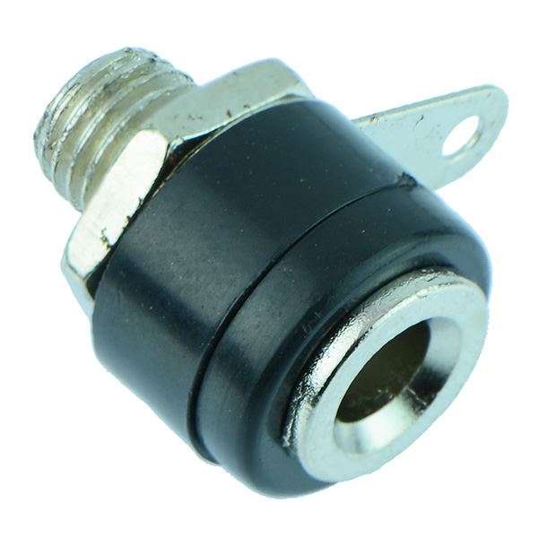 Black insulated test socket requiring 8mm panel cut-out and suitable for mating with 4mm plugs.