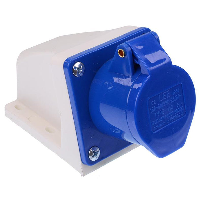 Blue 16A 230V 2P+E Industrial Surface Mount Socket IP44