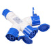 Blue 230V 3 way splitter featuring 2P+E connections, creates 3 separate outputs from 1 input.