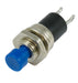 Momentary switch action Off-(On) SPST contacts 7mm panel cut-out diameter Suitable for panel mounting Dimensions: 29 x 9.5mm (Height x Diameter)