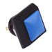 Blue momentary push button switch featuring a square actuator and normally open contacts. The switch features a zinc alloy housing and is suitable for mounting in 12mm diameter cut-outs. The switch is suitable for a wide range of applications including automotive, control panels, industrial, appliances etc.