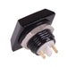 Momentary operation SPST-NO contacts IP65 protection rating Solder terminals Panel cut-out: 12mm Panel thickness: 5mm max Rating: 3A 250V Dimensions: 20.2 x 17.6 x 17.6mm (height x width x length)
