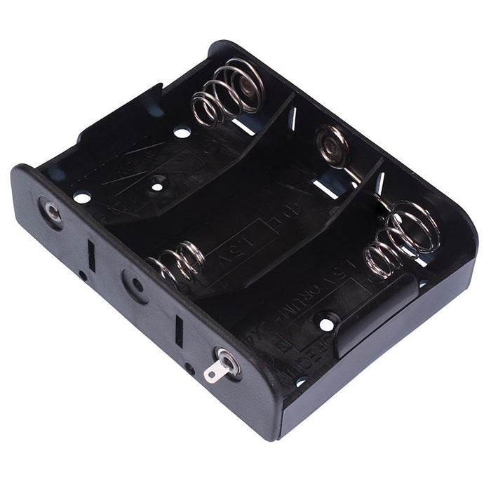 Holds 3 C batteries Solder lug terminals Black polypropylene housing Dimensions: 62 x 85 x 24mm (Length x Width x Height)