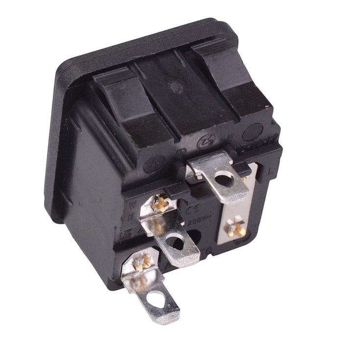 Fused 3 pole C14 IEC chassis Inlet connector featuring quick connect 4.8mm terminals. The inlet features 10A 250VAC rating and is suitable for a wide range of power applications.