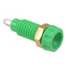 Colour: green Size: 4mm Solder lug terminal Panel cut-out: 8mm Voltage rating: 30VAC, 60VDC Current rating: 10A Dimensions: 28.6 x 11.2mm (length x diameter)
