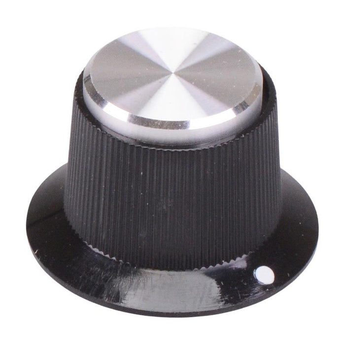 The CL1708 is a black pointer knob with a silver cap, suitable for use with a 6mm shaft and secured with a set screw. The attractive design makes it suitable for a wide range of audio applications.
