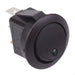 Circular rocker switch featuring a red LED suitable for 12V applications. The switch features quick connect terminals and snap-in mounting making the switch easy to install.