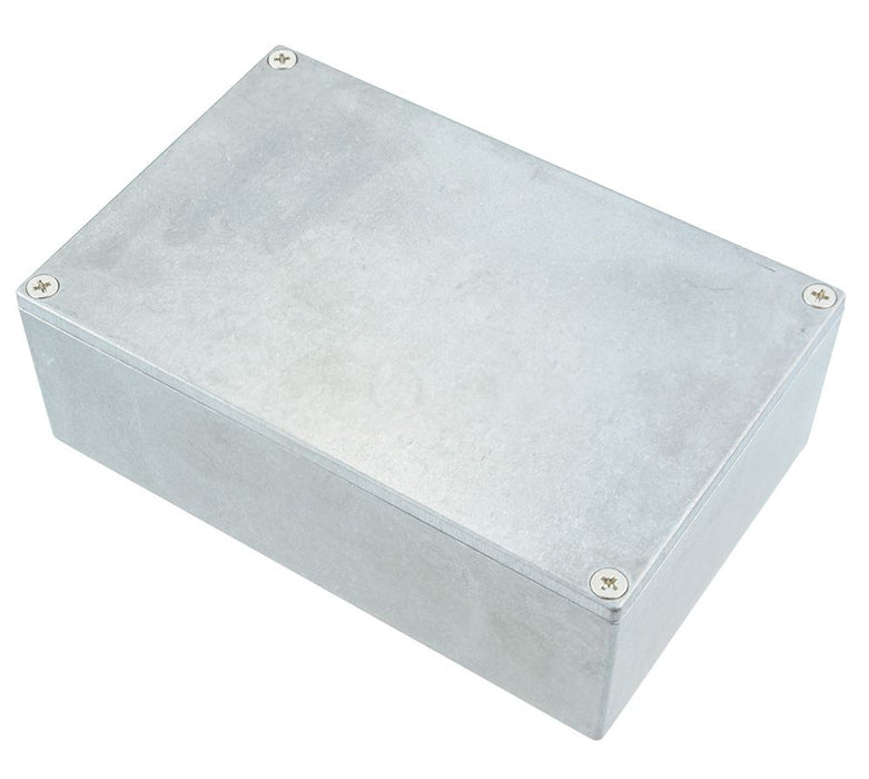 Hammond diecast aluminium enclosure with a natural long lasting finish. The enclosure has a tight and secure lid which protects the contents from dust and water. It comes with 4 self-tapping screws and is suitable for hard wearing applications.