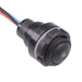 Button colour: black LED colour: blue LED forward voltage: 3.2V LED forward current: 20mA Panel cut-out: 16.2mm Contacts: momentary SPST-NO Gold plated silver contacts 500mm flying leads Contact rating: 200mA 48VDC Protection rating: IP67 Maximum panel thickness: 3mm Dimensions: 20 x 29.2mm (diameter x height)