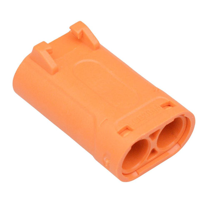 2 pins Contact material: silver plated copper Housing material: nylon Current rating: 20A Voltage rating: 600VDC Wire size: 14-12AWG Dimensions: 26.0 x 17.1 x 12.2mm (length x width x height)
