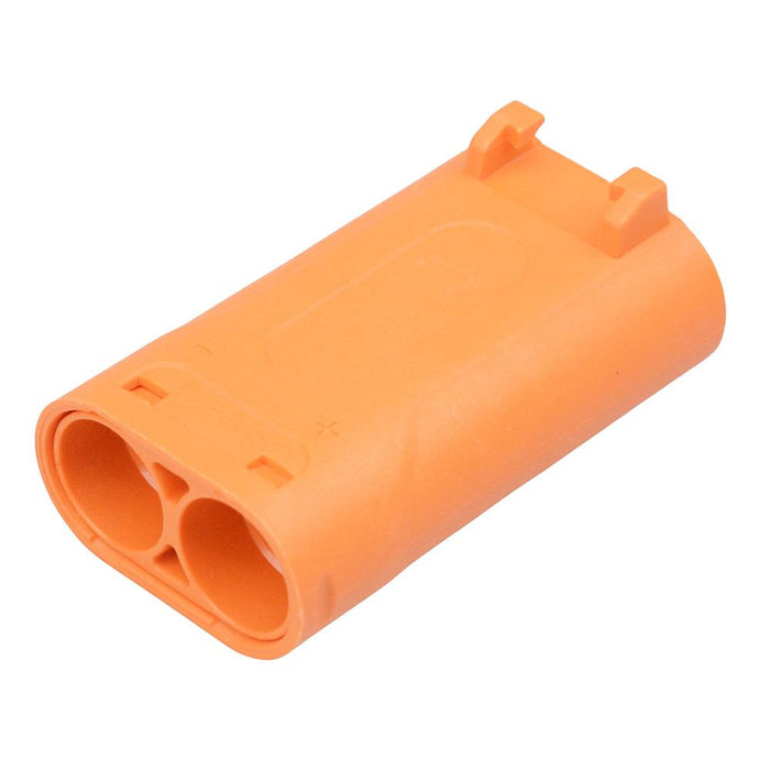 2 pins Contact material: silver plated copper Housing material: nylon Current rating: 55A Voltage rating: 1000VDC Wire size: 8-6AWG Dimensions: 46.5 x 26.8 x 18.5mm (length x width x height)