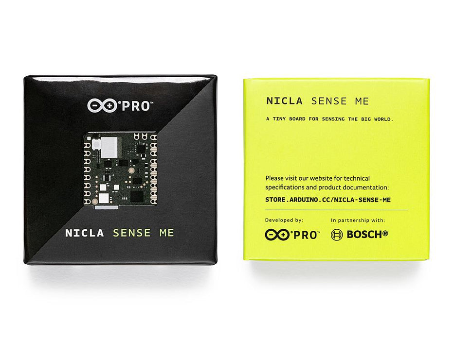 The Nicla Sense ME is a tiny, low-power tool that sets a new standard for intelligent sensing solutions. This version of the board comes without headers. With the simplicity of integration and scalability of the Arduino ecosystem, the board combines four state-of-the-art sensors from Bosch Sensortec. Designed to easily analyse motion and the surrounding environment hence the M and E in the name, it measures rotation, acceleration, pressure, humidity, temperature, air quality and CO2 levels by introducing completely new Bosch Sensortec sensors on the market. Its tiny size and robust design make it suitable for projects that need to combine sensor fusion and AI capabilities on the edge, thanks to a strong computational power and low-consumption combination that can even lead to standalone applications when battery operated. Part of Arduino Pro's new Nicla family of modular, intelligent products that are easy to use, cost effective, versatile and accessible, the Sense ME has a new, tiny form factor that is also compatible with the Arduino MKR and Portenta ranges. Robust hardware including industrial-grade sensors with embedded AI BLE connectivity maximizes compatibility with professional and consumer equipment 24/7 always-on sensor data processing at ultra-low power consumption.