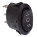On-Off-On oval rocker switch featuring SPDT contacts and 4.8mm quick connect terminals. The switch is designed for industrial and consumer applications requiring an oval shape panel mount switch.