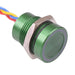 Body material: green anodized Body colour: green LED colour: green illumination: ring, 12VDC Panel cut-out: 16.2mm Contacts: SPST-NO Protection rating: IP68, IP69K mounted on panel Rating: 200mA 24VAC/DC Terminals: flying leads Bushing: flat operator, 4.5mm height Diameter: 18mm