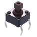 Vertical through hole mounting 6mm x 6mm package 7.3mm height 2.4mm x 2.4mm square actuator Rating: 50mA 12VDC Operating force: 160g Travel: 0.25mm APEM PHAP5-30 series