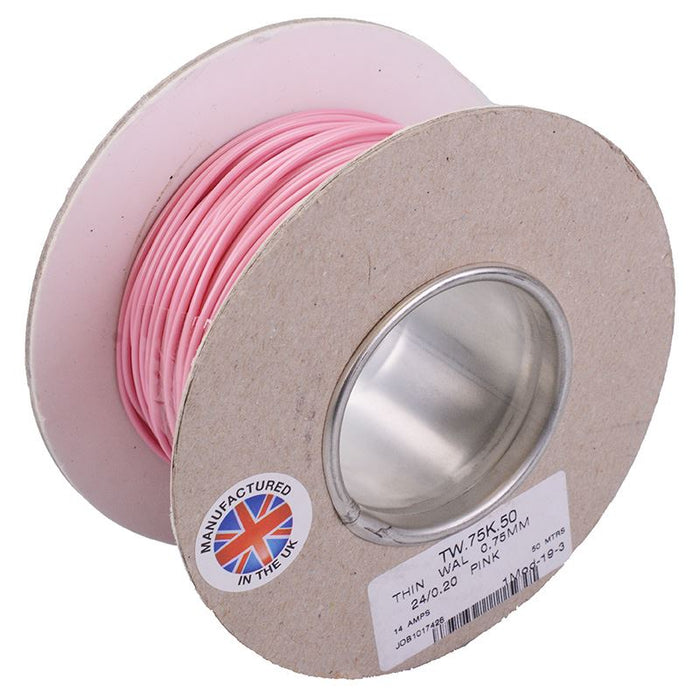 Pink 0.75mm² Thin Wall Cable 24/0.2mm 50M