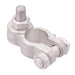 Post cargo type brass battery terminal with positive polarity, manufactured from tin plated brass. The terminal features a M8 stud and nut fixing.