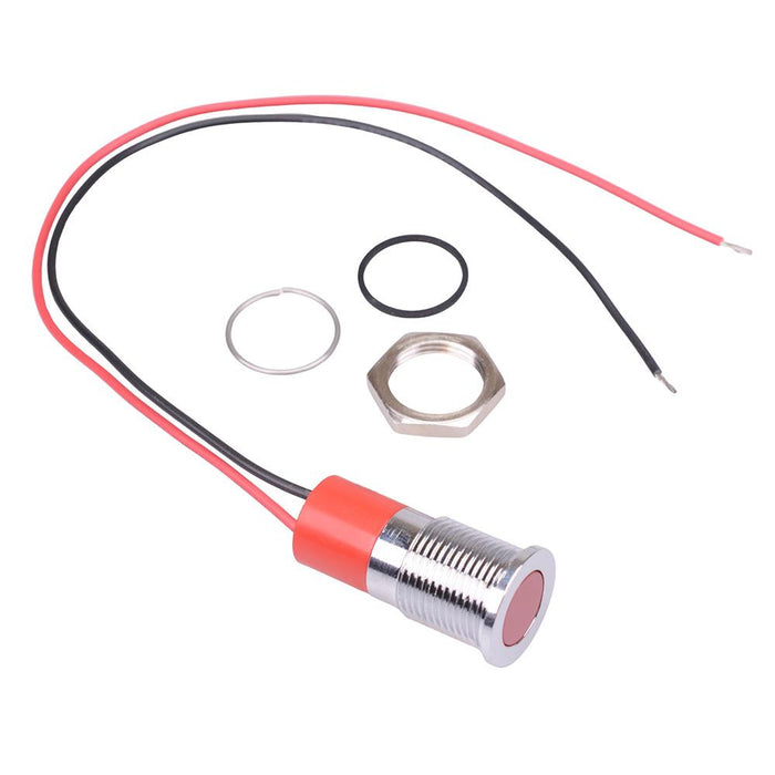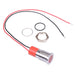 Colour: red Panel cut-out: 14mm Voltage rating: 220VAC Current rating: 3mA Panel thickness: 11mm max Brightness: 800mcd Operating voltage: 207 to 235VAC Bezel material: chrome plated brass Protection level: IP67 Terminal type: 200mm wires Length: 30.6mm Diameter: 16mm UL, REACH and RoHS certified