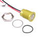 Colour: green Panel cut-out: 14mm Voltage rating: 12VDC Current rating: 20mA Panel thickness: 11mm max Brightness: 680mcd Operating voltage: 10.8 to 13.2VDC Bezel material: yellow anodized aluminium Protection level: IP67 Terminal type: rear epoxy 200mm wires Length: 19.35mm Diameter: 16mm UL, REACH and RoHS certified