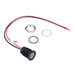 Colour: white Panel cut-out: 14mm Voltage rating: 3.3VDC Current rating: 20mA Panel thickness: 11mm max Brightness: 150mcd Operating voltage: 1.8 to 3.3VDC Bezel material: black plated brass Protection level: IP67 Terminal type: rear epoxy 200mm wires Length: 19.35mm Diameter: 16mm UL, REACH and RoHS certified