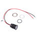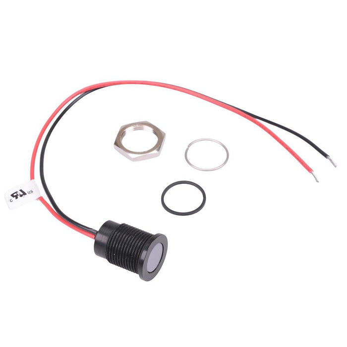 Colour: white Panel cut-out: 14mm Voltage rating: 12VDC Current rating: 20mA Panel thickness: 11mm max Brightness: 150mcd Operating voltage: 10.8 to 13.2VDC Bezel material: black plated brass Protection level: IP67 Terminal type: rear epoxy 200mm wires Length: 19.35mm Diameter: 16mm UL, REACH and RoHS certified