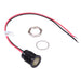 Colour: yellow Panel cut-out: 14mm Voltage rating: 12VDC Current rating: 20mA Panel thickness: 11mm max Brightness: 4mcd Operating voltage: 10.8 to 13.2VDC Bezel material: black plated brass Terminal type: rear epoxy 200mm wires Length: 19.35mm Diameter: 16mm UL, REACH and RoHS certified