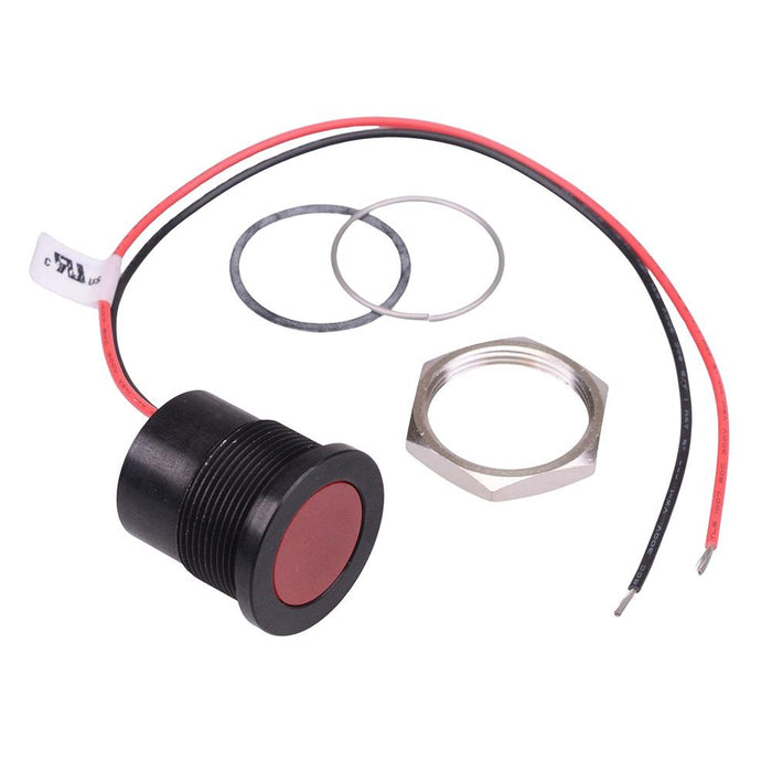 Colour: red Panel cut-out: 22mm Voltage rating: 110VAC Current rating: 5mA Panel thickness: 10mm max Brightness: 800mcd Operating voltage: 99 to 121VAC Bezel material: black anodized aluminium Protection level: IP67 Terminal type: rear epoxy 200mm wires Length: 24.5mm Diameter: 25mm UL, REACH and RoHS certified