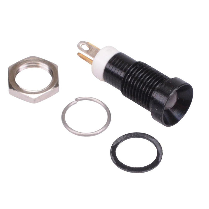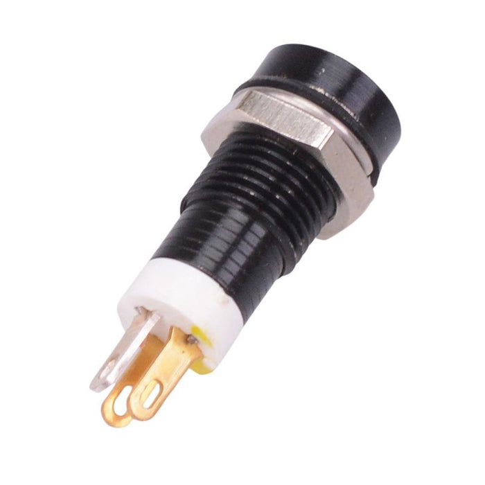 Colour: red / green / yellow Panel cut-out: 8mm Voltage rating: 2.1VDC Current rating: 20mA Panel thickness: 7mm max Brightness: red 150mcd, green 100mcd, yellow 100mcd Operating voltage: 1.8 to 3.3VDC Bezel material: black plated brass Protection level: IP67 Terminal type: quick connect / solder 2.8 x 0.8mm Length: 18.5mm Diameter: 9.4mm UL, REACH and RoHS certified