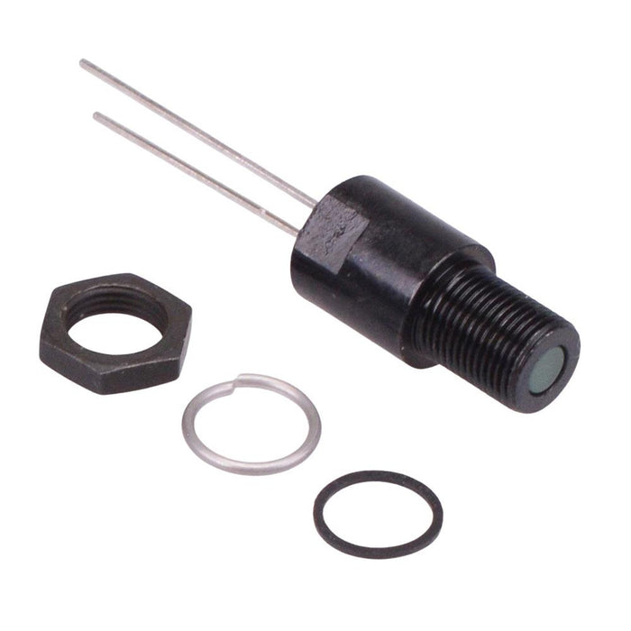Colour: green Panel cut-out: 6mm Voltage rating: 3.2VDC Current rating: 20mA Panel thickness: 3.5mm max Brightness: 350mcd Operating voltage: 1.8 to 3.3VDC Bezel material: black plated brass Protection level: IP67 Terminal type: pins Length: 15.8mm Diameter: 7.9mm UL, REACH and RoHS certified