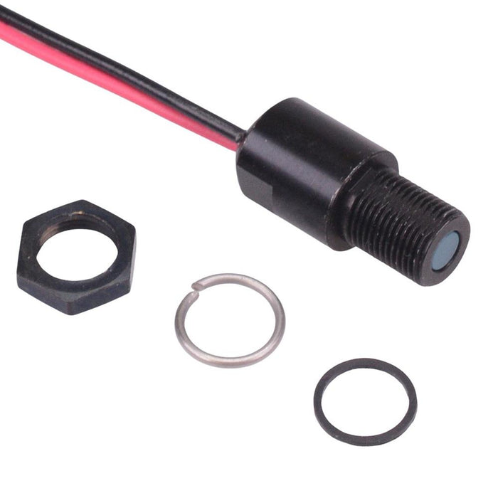 Colour: blue Panel cut-out: 6mm Voltage rating: 12VDC Current rating: 20mA Panel thickness: 3.5mm max Brightness: 200mcd Operating voltage: 10.8 to 13.2VDC Bezel material: black plated brass Protection level: IP67 Terminal type: 200mm wires Length: 15.8mm Diameter: 7.9mm UL, REACH and RoHS certified