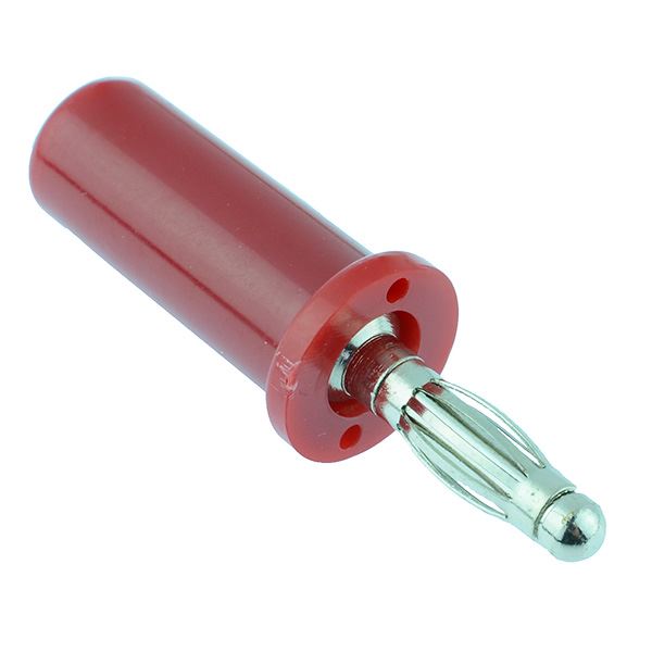 Red 4mm plug suitable for building your own test leads. The plugs accept cable up to 3mm diameter and are terminated by soldering.