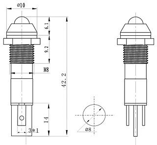 Voltage: 12V Colour: red Panel cut-out: 8mm Fitted with resistor Supplied with nut and gasket 2.8mm quick connect terminals