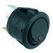 Circular rocker switch featuring SPST contacts and red illumination suitable for a wide range of applications including automotive.