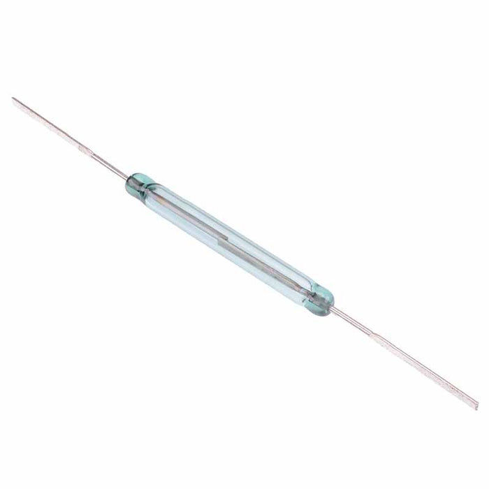 Reed switch featuring 0.5A maximum switching current and NO contacts hemetically sealed within a glass tube. The switch features a quick response time and is lightweight making them suitable for low power applications.