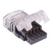 Snap fit connector suitable for forming a reliable connection between 10mm width waterproof RGB LED strips and 4 pin cable.