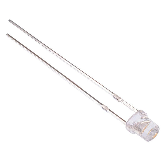 Luminous intensity: 1120mcd Viewing angle: 120° Forward voltage: 3.1V Forward current: 30mA Suitable for through-hole mounting Cathode identified as the shorter lead 2.54mm lead pitch Water clear lens Excellent weather resistance Long lifespan
