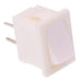 White On-Off rocker switch featuring a 19.2 x 13mm panel cut-out and SPST contacts. The switch features a 10A 250VAC rating and pcb terminals, suitable for a wide range of applications.