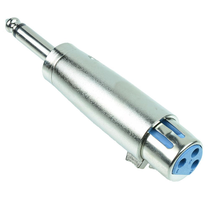 XLR Female 3 Pole to 6.3mm Mono Plug Adaptor. Commonly used in audio and video electronics cabling applications.