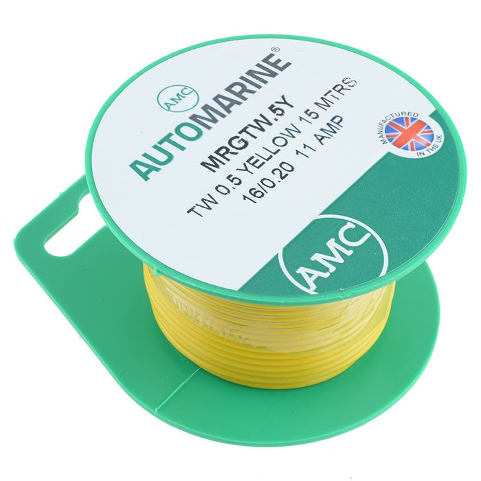 Yellow 0.5mm Thin Wall 11A Cable Mini Reel 15m
